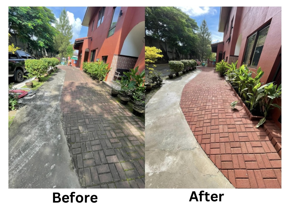 • Our “concrete” cleaning method can also be used on your property’s stone and brick surfaces.